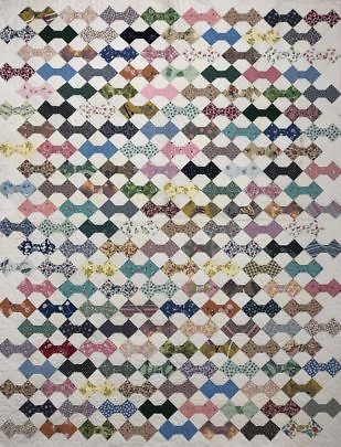 Multi-dress Fabrics Bowtie Patchwork Quilt, circa 1930s