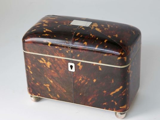 English Regency Tortoiseshell Dome Top Double compartment Tea Caddy, 1st quarter of the 19th Century