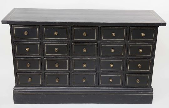 Contemporary 20 Drawer Black Painted Apothecary Chest