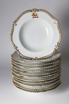 Set of 12 Chamberlains Porcelain Soup Bowls, circa 1900