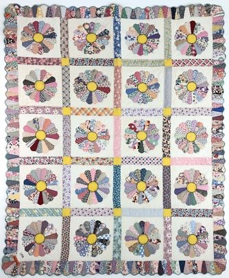 Signed and Dated Multi-color Dresden Plate Patchwork Quilt, circa 1932