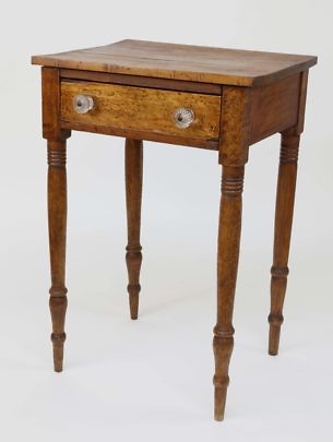 American Bird’s Eye Maple and Cherry One Drawer Work Stand, circa 1820