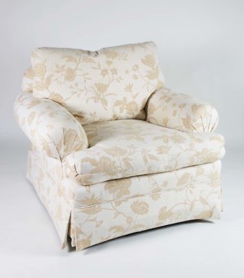 Pair of Creme Floral Upholstered Overstuffed Club Chairs