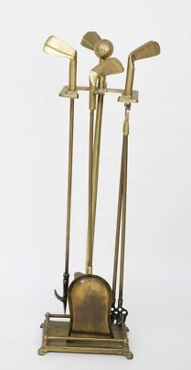 Five Piece Brass Golf Club Fireplace Tool Set