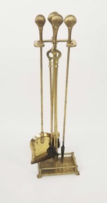 Set of Brass Scallop Shell Finial Fireplace Tools