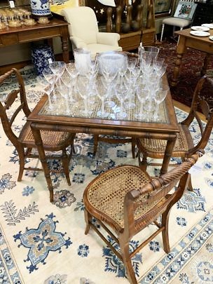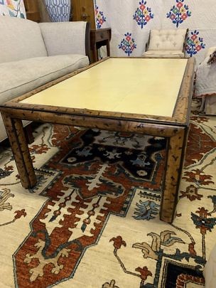 Mid Century Modern Faux Bamboo Coffee Table with Pig Skin Top