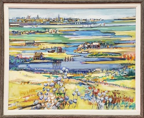 Sybil Goldsmith Oil on Canvas “Panoramic View of the Town of Nantucket from the Creeks of Monomoy”