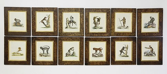 Collection of 12 Hand Colored Engravings of Monkeys