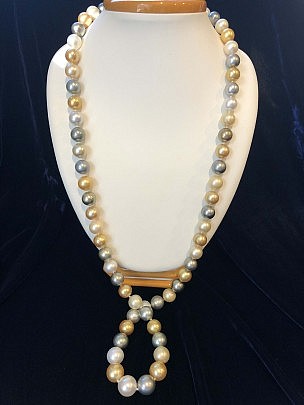 Fine 12.1mm-15.1mm South Sea Pearl Necklace, 14k Yellow Gold and Diamond Clasp