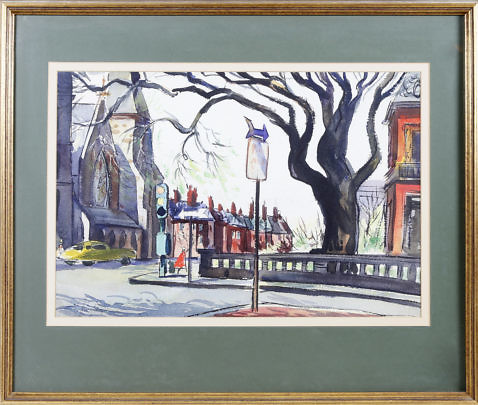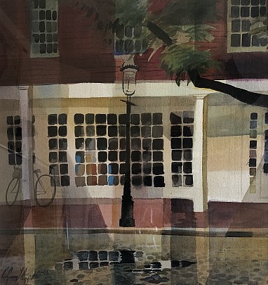C. Robert Perrin (1915-1999) Watercolor on Paper “Zero Main Street Reflections”