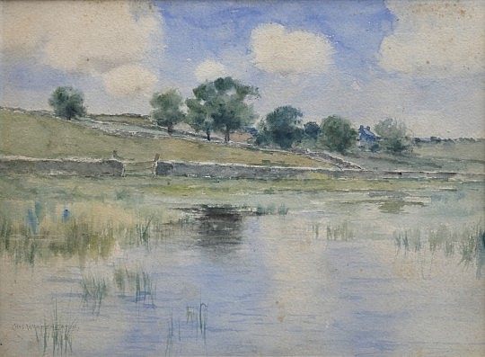 Charles Warren Eaton Watercolor, Massachusetts Farm Landscape