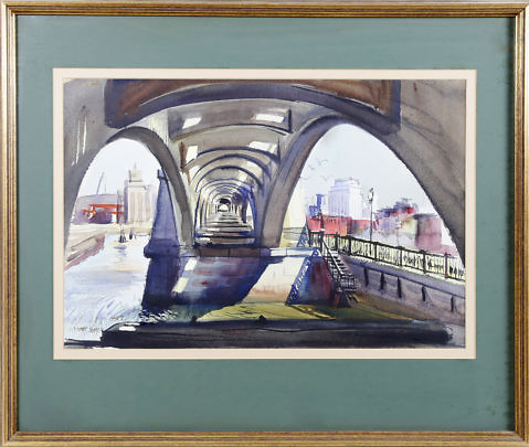C. Robert Perrin Watercolor on Paper “Boston Bridge on the Charles River”