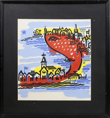 Peter Hunt Folk Art Tempera On Paper “Cape Cod Red Fish”