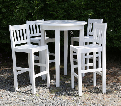Four Weatherend White Epoxy Painted High Top Chairs and High Top Table