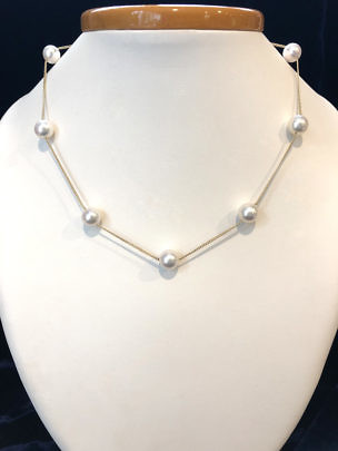 18K Yellow Gold 9mm-9.5mm White Akoya Pearl Tin Cup Necklace