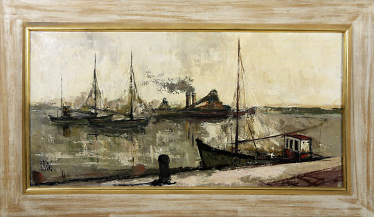 Francois Franc Oil on Canvas “Busy Harbor Scene”