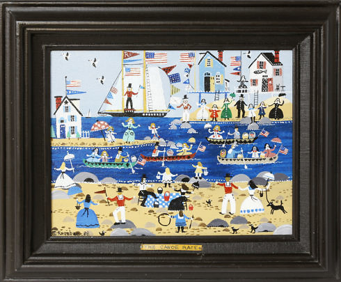 Rosebee Folk Art Oil on Canvas “The Canoe Race”