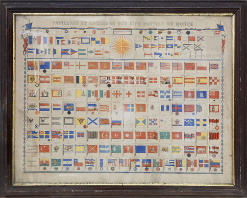 Antique Hand Colored Wordly Nautical Flag Chart
