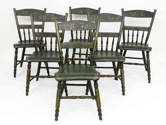 Set of Six Pennsylvania Painted Plank Seat Dining Chairs
