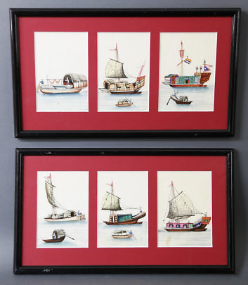 Six Chinese Export Watercolors on Pith Paper “Six Views of Junks”
