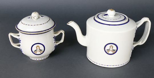 Three Piece Chinese Export Armorial Lovebird Decorated Tea Set