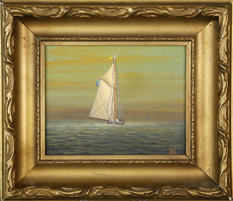 George Nemethy Oil on Wood Panel “Sailing The Catboat”