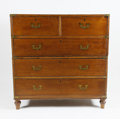 Brass Bound Two-Part Campaign Chest of Drawers, 19th century
