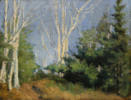 Oil on Artist’s Board Impressionist Woodland Landscape “Birch Trees” Attributed to Frank Swift Chase