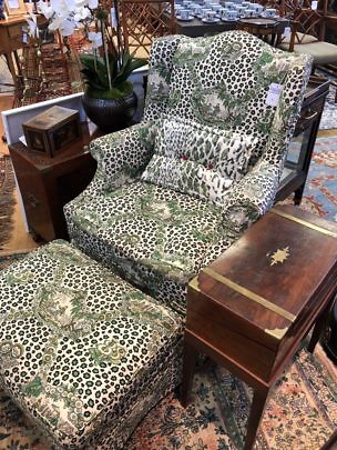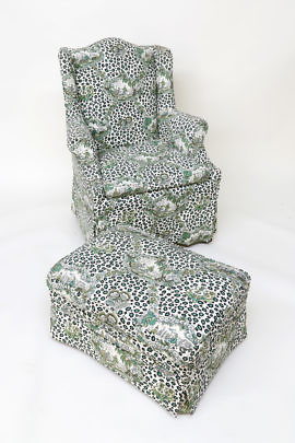 Billy Baldwin Upholstered Wing Chair and Ottoman