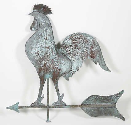 Large Green Patina Copper Rooster Weathervane