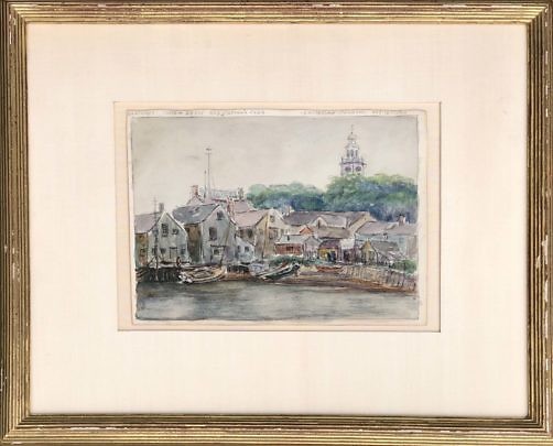 Reynolds Beal Watercolor on Paper “Nantucket-Custom House, and Captain’s House, Unitarian Chuch, Aug. 16, 1910”