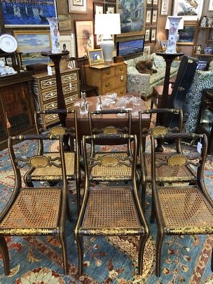 Set of Six English Regency Partial Gilt Dining Chairs