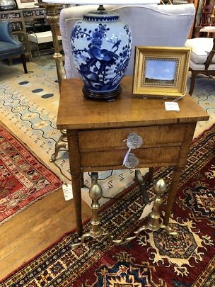 American Hepplewhite Tiger Maple 1 Drawer Work Table