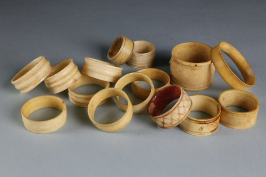 Assortment of 15 Bone and Ivory Turned Napkin Rings, circa 1840-1860