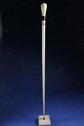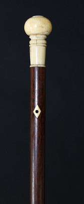 Whaler Made Whale Ivory and Tropical Wood Barber’s Pole Walking Stick, circa 1840
