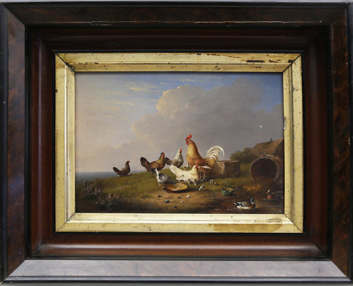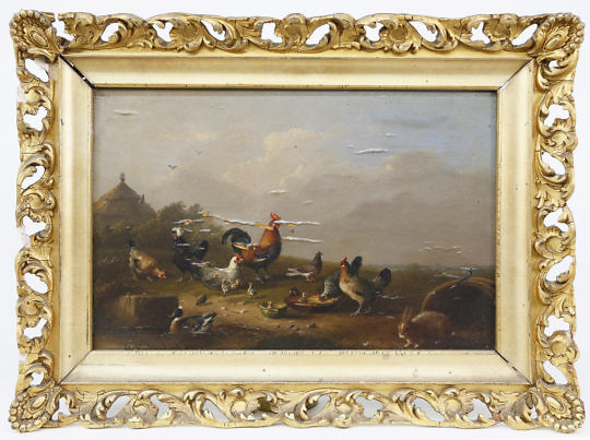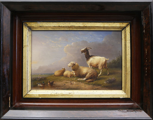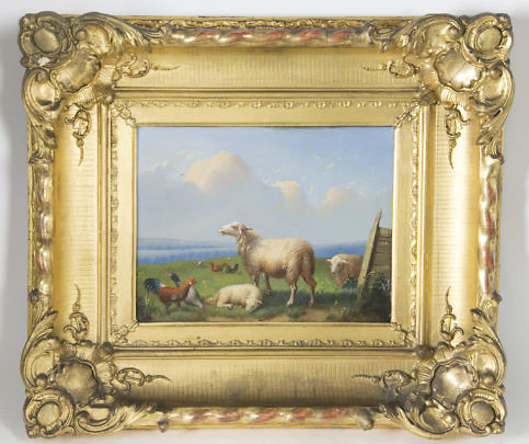Francois Vandeverdonck Oil on Board “Pastoral Scene with Sheep and Chickens”