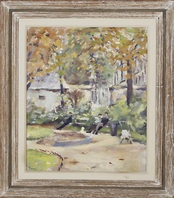 Andrew Shunney Oil on Canvas “Parc de Talleyrand, Paris”, circa 1940s