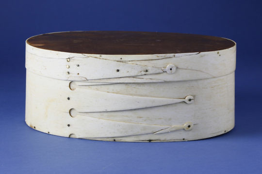 Rare 19th Century Whaler Made 3 Compartment Baleen and Pine Oval Pantry Box