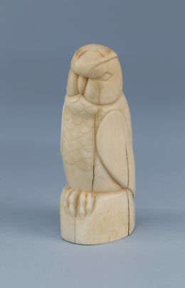 Carved Sperm Whale Tooth in the Form of a Hooded Arctic Owl, circa 1870