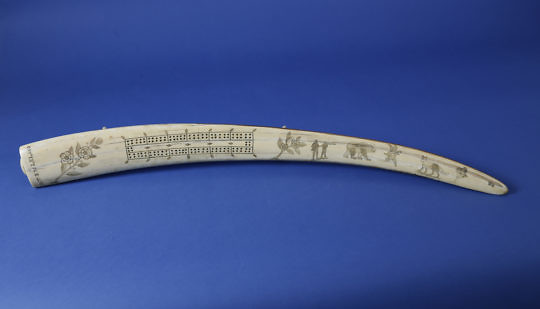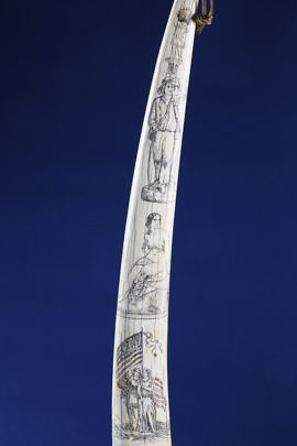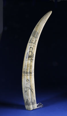Large American Scrimshawed Walrus Tusk, circa 1885-1890