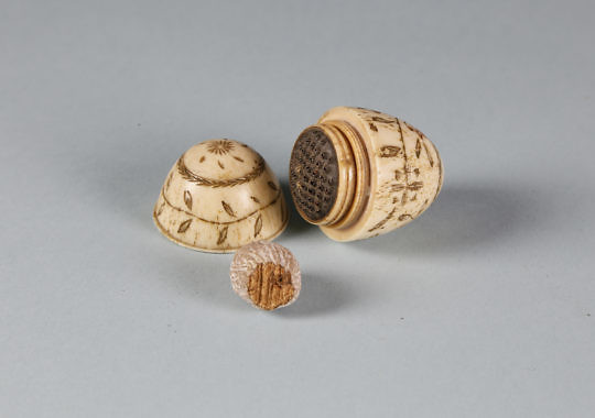 Scrimshawed and Polychrome Whalebone Nutmeg Grater Egg, circa 1850
