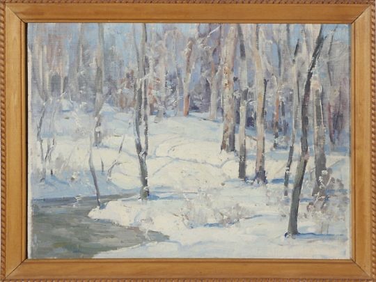 Frank Swift Chase Oil on Board “Winter River Landscape”