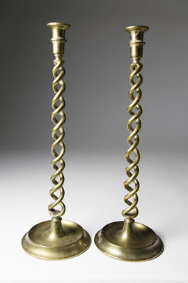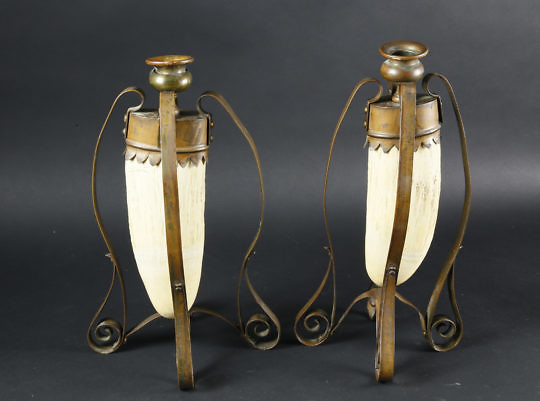 Matched Pair of One-of-a-Kind Sperm Whale Teeth and Copper Candlesticks, circa 1870-1880