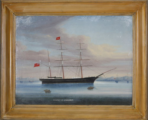 Chinese Export Oil on Canvas “Xiphias in Port, Master John Morris” (1857-1862)