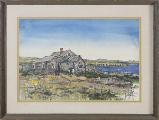 Roy Vandam Watercolor on Paper “Linda Loring’s Pond House”