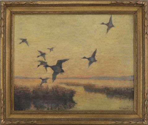 Bernard M. Keyes Oil on Canvas “Ducks at Daybreak”