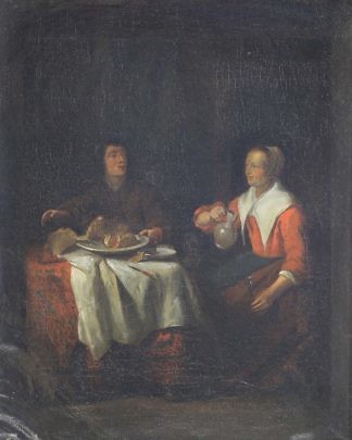 Continental Oil on Canvas “Interior Dining Scene”