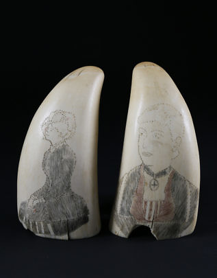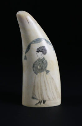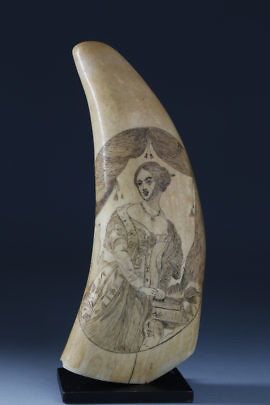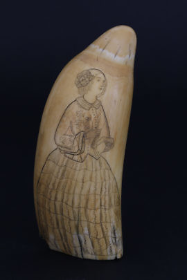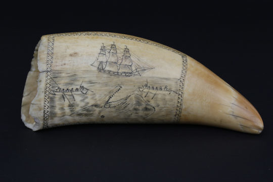 Fine Scrimshaw Lower Whale Tooth Section, circa 1850