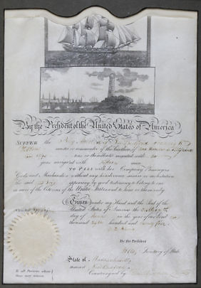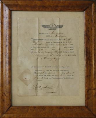 1842 New Bedford, Massachusetts Whaling Voyage Customs Document of the Ship Martha Of New Bedford