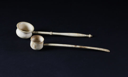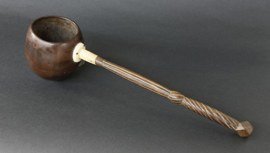 Whaleman Made Ivory Coconut Shell Rum Dipper, circa 1850